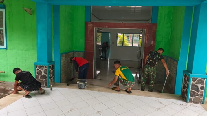 Satgas TNI Manunggal Membangun Desa (TMMD) Reguler Ke-127 Kodim 0819/Pasuruan kembali menunjukkan kepedulian terhadap fasilitas ibadah masyarakat. Prajurit Satgas melaksanakan pembersihan dan finishing