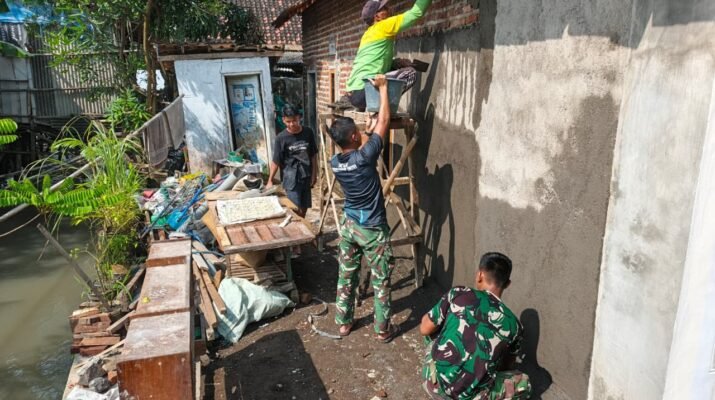 Semangat gotong royong terlihat saat anggota Satgas TNI Manunggal Membangun Desa (TMMD) Ke-127 Kodim 0819/Pasuruan bersama warga menyelesaikan tahap finishing rehabilitasi Rumah Tidak Layak