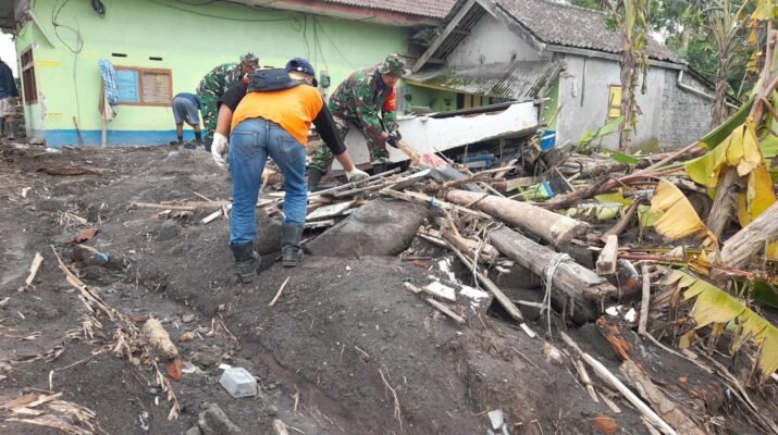 Lumajang — Upaya penanggulangan dampak erupsi Gunung Semeru di Kecamatan Pronojiwo kembali digencarkan. Personel Kodim 0821/Lumajang bergerak cepat membantu warga yang terdampak,