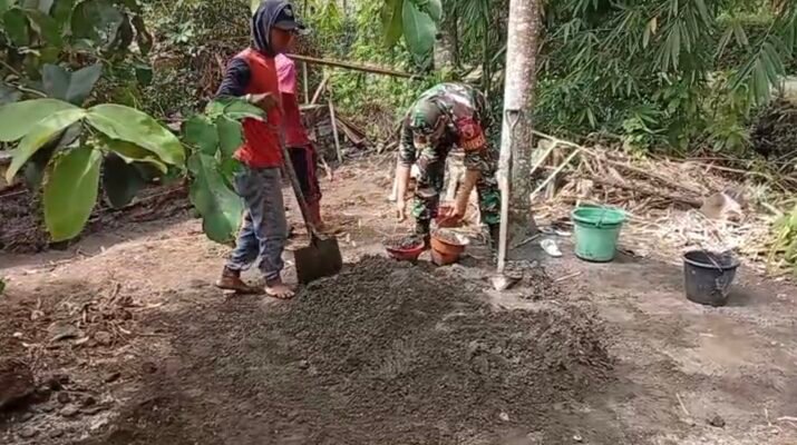 Purwoharjo, Banyuwangi – Babinsa Desa Kradenan, Serda Triyono, melaksanakan kegiatan kerja bakti renovasi Mushola bersama masyarakat Desa Kradenan pada hari ini. Kegiatan gotong