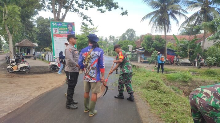 Purwoharjo – Babinsa Desa Karetan, Kopka Bambang Subroto melaksanakan kegiatan kerja bakti bersama masyarakat dalam upaya menjaga kebersihan dan kenyamanan lingkungan, Kamis 27/11/2025.