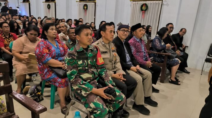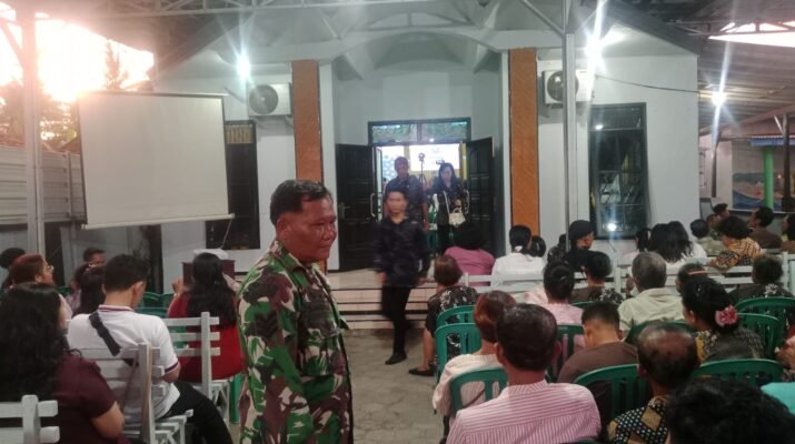Purwoharjo – Babinsa Desa Grajagan, Koramil setempat, melaksanakan pengamanan kegiatan ibadah Natal yang berlangsung di Gereja GKAI Grajagan Pantai, Desa Grajagan, Kecamatan Purwoharjo,