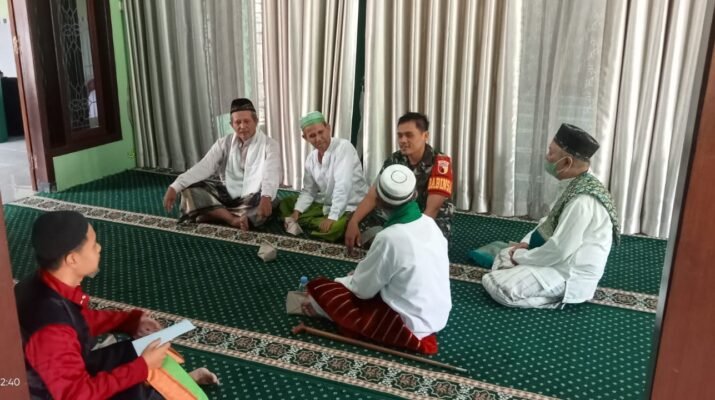 Purwoharjo — Babinsa Desa Kradenan, Serda Triyono, melaksanakan kegiatan Komunikasi Sosial (Komsos) dengan tokoh agama setempat sebagai bagian dari tugas pembinaan teritorial untuk memperkuat