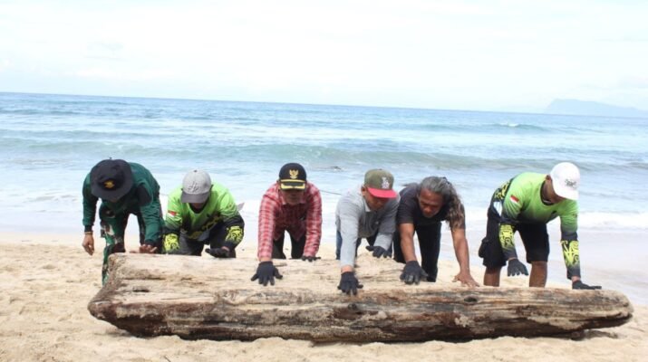 Aksi heroik terpancar di pesisir Pantai Pancur, Taman Nasional Alas Purwo, saat ratusan personel gabungan dari TNI, Polri, Pemerintah Daerah, hingga pelajar bersatu padu dalam “Gerakan ASRI” (Aman, Sehat, Resik, Indah) pada Kamis (05/02). Bukan sekadar memungut sampah plastik, para relawan ini mengandalkan kekuatan gotong royong yang luar biasa untuk mengevakuasi batang-batang pohon raksasa yang terdampar di sepanjang garis pantai. Dipimpin langsung oleh Kasdim 0825 Mayor Suprapto, kegiatan ini mengubah wajah pesisir menjadi lebih lapang dan estetis, membuktikan bahwa soliditas lintas sektor adalah kunci utama dalam menjaga kelestarian wilayah konservasi sekaligus meningkatkan keamanan bagi para wisatawan.